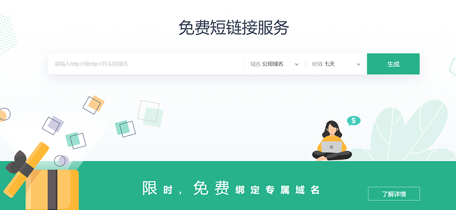 免費短鏈接服務,全球CDN加速。可綁定專屬域名。